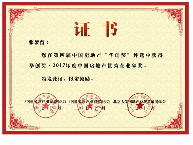 《華創(chuàng)獎(jiǎng)?2017年度中國房地產(chǎn)***企業(yè)家獎(jiǎng)》